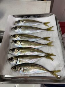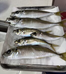 なんと!!すぐひきがあり、鯵が2匹もかかっている✨